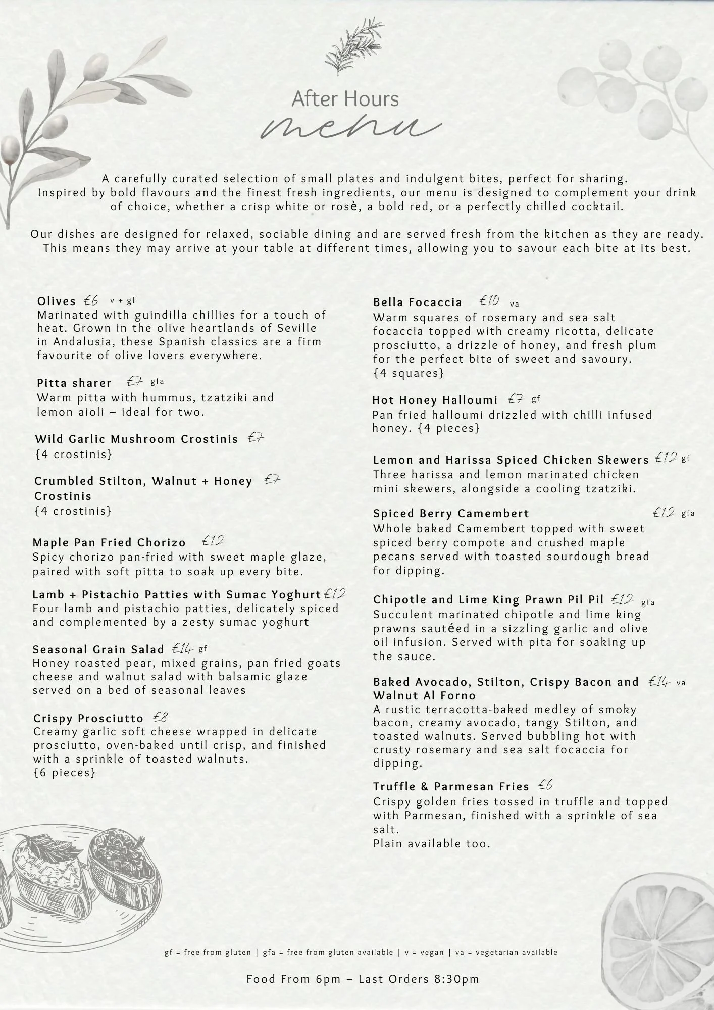 An elegant menu of refined small plates, crafted with the finest ingredients and designed for sharing. Each dish is served fresh as it’s ready, inviting you to savour every flavour at a relaxed, unhurried pace.